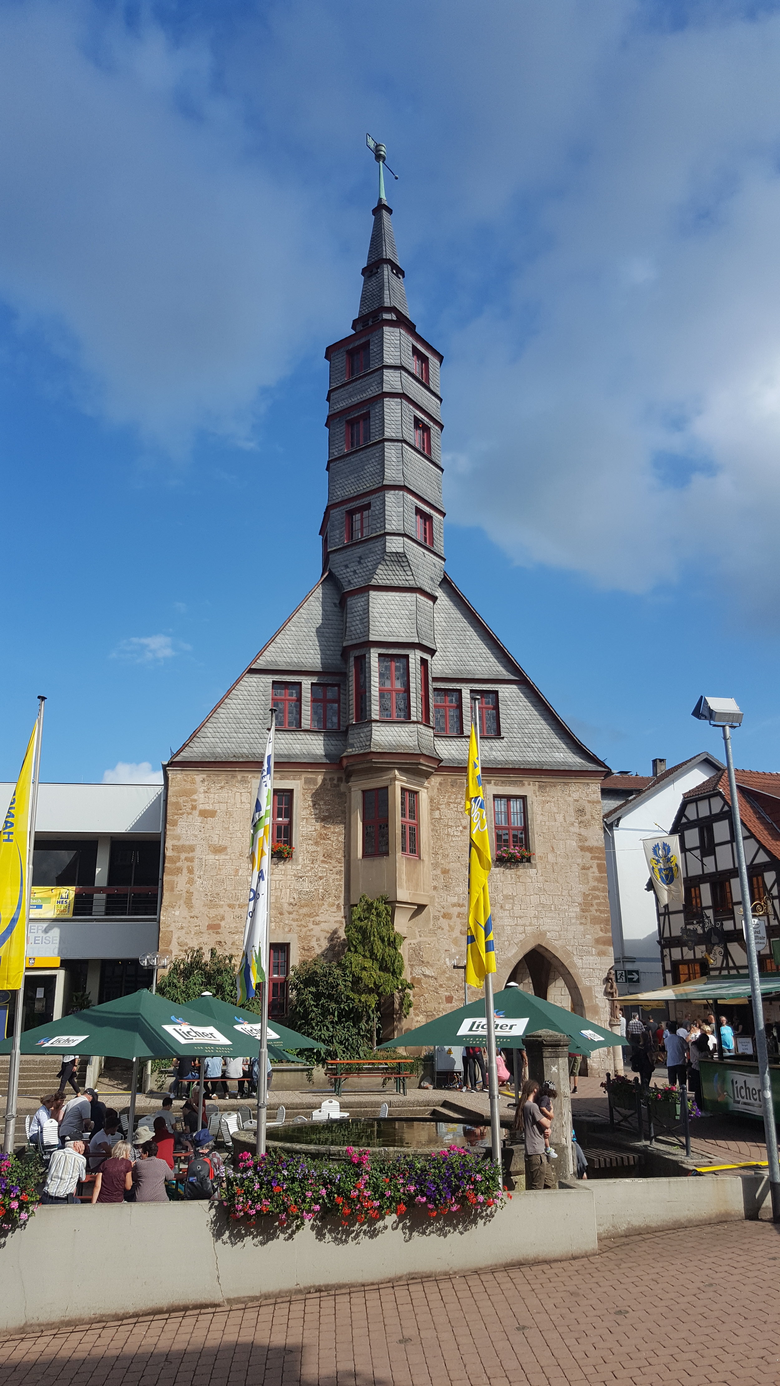 We made full use of our rental car and so, with a few days left in Germany were able to fulfill an idea that we had been toying with for a couple of months. Before immigrating to the US, my (Pat) maternal ancestors lived in Korbach, a small town in Germany about five hours north of Lörrach. We weren’t sure what, if anything, we would find there but we decided that this was the best opportunity we would have to visit my ancestral home. We set off early on a Friday morning, optimistically hopeful that the long journey would be worth the drive. We drove expecting a quiet little town nestled in rolling hills but were surprised to discover a bustling fair filling the town’s beautiful streets.